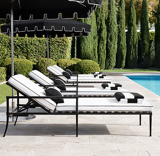 transat, en, fer, forge, chaise, longue