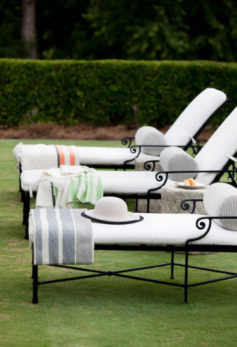 Description produit : chaise longue de jardin en fer forgé avec coussin déhoussable